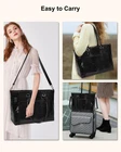 Spacious and quality laptop tote bag with lots of pocket organizers From , a leading functional tote bag brand . Fashion and functional design, quality materials, excellent workmanship . 8+ years experiences in designing and manufacturing functional bags Roomy computer tote bag Size of this purse is 44cm/17.3in * 16cm/6.2in * 32cm/12.5in (L*W*H). It fits laptop, laptop accessories (charger cord & mouse), writing utensils, planner, small files and more Built-in USB Port USB port is built-in on outside of the bag, charge your cell phones easily( Power bank is not included ) Detachable shoulder Pad Thick and wide shoulder pad is included to reduce burden from your shouder/hand Solid designed and well made This laptop purse is made of high quality materials. It's durable ,water resistant and easy to clean Unrivaled Quality Designed and built with high quality fabric, zipper and excellent workmanship Package contains: 1x laptop tote bag with multiple pockets inside 1x Shoulder strap 【HIGH QUALITY MATERIAL】: Made of high-quality material and high-density nylon lining, Reinforced flat bottom features 4 metal feet to protect against scratching. Upright computer Bag waterproof and easy to clean, Durability. other details that is smooth zipper, sturdy metal accessories and the reinforced stitching at each stress point give this womens laptop bag an upgrade in durability. 【MULTI-POCKET TOTE BAG】: Large capacity laptop bag main pocket features 1 main laptop compartment, 1 iPad zipper pocket, 2 elastic side pockets, 2 mesh pockets, Front pocket structure:2 large open pockets for A4 documents and books, 3 pen slots, 3 small pockets, large zipper pocket on the back for wallet, sunglasses, cell and more. 【USB PORT DESIGN】: With built in USB interface, it's convenient to charge your or other electronic devices while keeping your power bank inside of the bag (Power bank is not included) as a teacher tote bag, computer tote bag or women crossbody work bag. 【PERFECT SIZE WORK BAG】: Work bag for women is 17.3" x 6.2" x 12.5"(L*W*H). Net weight: 3.1 lb.Adjustable shoulder strap is 27~53 inches long, help you for a comfier carry. Professional Laptop Bag suitable for most 13"/14"/15"/15.6/17" laptops, and it is large enough to make your daily stuff well organized. 【RICH CARRYING METHODS】:Sturdy carry handle with adjustable shoulder strap for easy portability, It can also be connected to a trolley for easy carrying. You be carried in several ways as a briefcase or handbag, business work bag shoulder bag or a crossbody bag as well, convenient and comfortable. With such large organized handbag, it meets all your daily supplies.