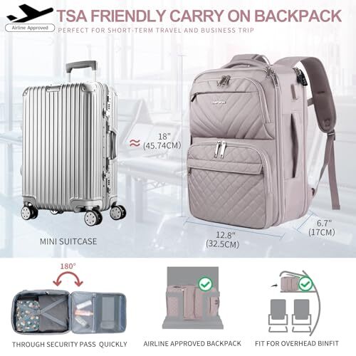 Return Policy Fast Delivery Trusted seller Travel Backpack for Women, Large Carry On Backpack Airline Approved Personal Item Travel Bag, 17 inch TSA Friendly Laptop Backpack with USB Port, Casual Daypack Business Backpack, Grey Pink Product Description 【Large capacity and multi pocket design】: large travel backpack with spacious capacity and reasonable partitioning. The integrated zipper design provides greater storage space, making it easy to place packaging boxes, makeup bags, clothing, camera bags, and equipment for travel of 3 to 7 days. This Personal Item Travel Bag is an ideal choice for men, women, weekend travelers, or occasional vacationers. 【Designed specifically for travel and approved by airlines】: This carry on backpack measures 18 x 12.8 x 6.7 inches and weighs 2.1 pounds. It features multiple layers of breathable padding and adjustable breathable straps, providing comfortable carrying experience for hours and reducing stress. At the same time, the backpack is equipped with an adjustable chest strap, providing a better wearing experience. A luggage strap that can secure the backpack to the suitcase. 【Briefcase/Handbag/Backpack Three in One】: This Personal Item Travel Bag has handles on the side, making it easy to pick up the backpack from the side and turn it into a briefcase. The luggage strap on the back can easily secure the backpack to the luggage and suitcase. 【USB Port Design】: Equipped with an external built-in USB charger and an internal charging cable, it can charge your phone while walking or cycling, freeing up your hands.(power bank not included). 【Durable and Best Gift Choice】: This womens backpack is made of durable, waterproof polyester fiber and scratch resistant materials. The sturdy metal double zipper and reinforced stitching can extend the lifespan of the backpack. 17 inch laptop storage space provides ample space. It is an excellent gift for men and women who enjoy traveling, and the best choice for holiday gifts. Shipping Returns Payment Shipping Shipping is FREE to all addresses other than APO/PO boxes in the lower 48 states. All our stock ships from US-based warehouses. Shipped via USPS or UPS (depending on location and package weight) Unless stated otherwise, all orders will ship within 24-72 hours of your payment being processed. Check our feedback to see the great reviews of FAST shipping we offer. Returns Seller does not accept returns Payment We currently accept payment via eBay managed payments only. Once payment is cleared, we will dispatch your shipment within 1-3 business days. Please refer to the "Shipping" tab for more information regarding shipping speed to your destination.
