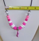 Necklace - Pink Sunglasses with pink and white beads Description: -- Brand new -- This is a handmade item, so there are no store tags. -- Proudly designed and made in the U.S.A. This item includes: -- (1) 20 inch black Stretch Magic Silkies necklace The latest in jewelry technology (See description below.) -- (2) stainless steel spacers -- (1) Charm by Bead Landing (Pink Heart-shaped Sunglasses) materials ---- plastic, enamel, iron, and zinc alloy (nickel free) -- (20) lightweight plastic beads by Bead Tin Made in the U.S.A. bead colors include: solid white, clear, light pink, dark pink, white ring, and pink oval Stretch Magic Silkies Necklace -- Made from silicone, so they have slight stretch and recover. -- Due to slight stretch, there is no need for a clasp. Just pull over the head. -- 20 inch necklace stretches to over 26 inches to easily slip over the head. -- Thicker section in the back prevents the beads from going to the wrong side. This thicker section does NOT come apart. -- Strong and durable. -- Latex free. -- Nickel free. -- Long lasting. -- Will not tarnish. -- Will not knot like chains can. -- No lobster clasp that can jam or break. Condition: Brand new, Handmade by: Designs by Mary Katherine Specializing in materials that last a long time. Free shipping Seller ships within the U.S.A. only. All items ship from a smoke-free, pet-free home. No returns See Designer's full line of unique necklaces. Search on Ebay: Designs by Mary Katherine
