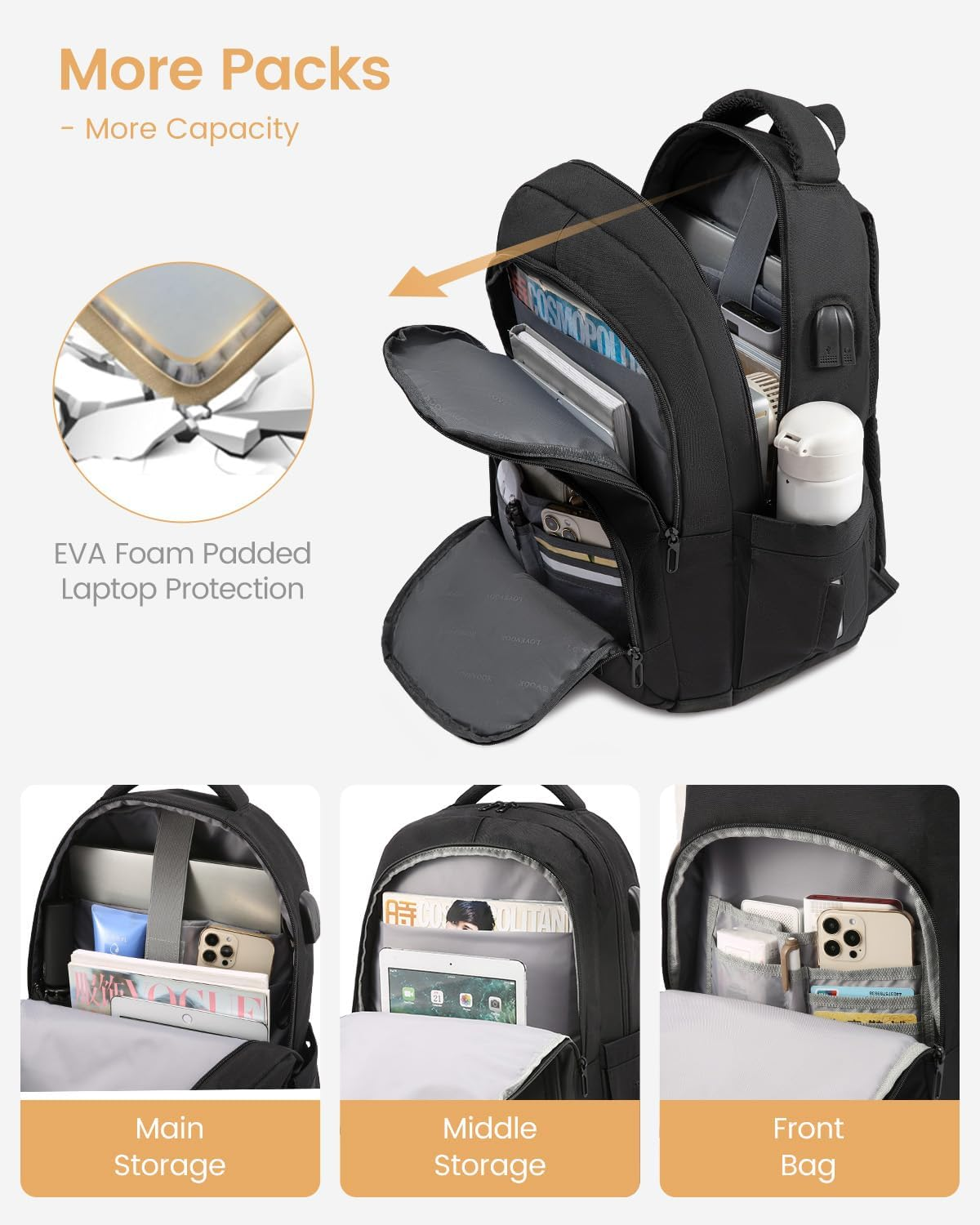 This backpack is perfect for school or work—lightweight yet super spacious! The 15.6" laptop compartment keeps my device secure, and the multiple pockets help me stay organized. The sleek black design looks great, and it’s comfortable to carry all day. Highly recommend for students or professionals!