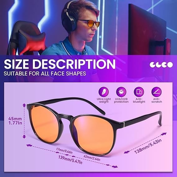 Blue light blocking glasses BLUE LIGHT BLOCKING: Our blue light glasses boast UV400 protection, blocking up to 99% of harmful blue rays from computer screens. Enjoy gaming, reading, or watching TV without straining your eyes or disrupting your sleep with these blue light blocking glasses EYE RELIEF: Our bluelight glasses are engineered to reduce blurry vision or strain caused by prolonged screen time. These blue blocker glasses aid in better sleep by preventing blue light from disrupting your natural sleep cycle, helping you fall asleep faster and enjoy a more restful night's sleep COMFORTABLE: Crafted from durable, lightweight TR90 material, our trendy blue-light glasses ensure long-lasting comfort without stressing your nose. The high-transmittance lenses (up to 99%) on the glasses for computer eye strain help keep your eyes relaxed VALUE PACK: Enjoy three pairs of these anti glare glasses at an excellent price. Perfect as blue light glasses for woman or blue light glasses men, these non-prescription computer glasses can be easily replaced to suit your needs. These uv light glasses are not only functional but also serve as a stylish accessory RISK-FREE PURCHASE: If you encounter any issues with our anti blue light glasses, contact us for prompt resolution. We are committed to ensuring your satisfaction and offer risk-free returns