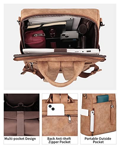 Return Policy Fast Delivery Trusted seller Leather Laptop Backpack for Women Designer 15.6 inch PU Laptop Bag, Ladies Travel Computer Work Backpack Brown Product Description Design: The leather laptop backpack for women adopts the design concept of light and practical, that laptop backpack looks rather simple and fashionable. The popular convertible design (backpack to shoulder bag) makes this convertible backpack suitable for a variety of use scenarios; and the design with colorful shoulder straps and tassels makes the leather backpack distinctive. The leather laptop backpack is available in a variety of colors and leather styles for easy fashion matching. Structure: This leather laptop backpack purse for women adopts a zipper with a large vertical opening at the top, which is very convenient for loading items. T are muti-pockets inside the PU leather backpack, which is convenient for storing your items. This laptop backpack has 13 pockets: 1 main compartment and contains a 15.6 in laptop compartment, 5 zipper pockets, 2 slot pockets and 4 side pockets. So this is a spacious and stylish computer backpack for women. Size: 13.5 (L) × 5.5 (W) × 15.5 (H) inches, Weight: 1.92 lbs. This women's laptop backpack is suitable for daily use or study, as well as short trips of one or two days. At the right size of 15 inches height and the design of large vertical mouth at the top, it can comfortably accommodate a 15.6-inch laptop or smaller, as well as office documents, mobile phones, water bottles, clothing, and other essentials. So, it can be a nice ladies laptop backpack for travel ,work or business. Material: The material and hardware fitting selection is strictly d and also workmanship are high quality. The womens laptop backpack material is newest waterproof soft PU leather which is so light and durable, so this waterproof vegan leather laptop backpack women can deal with a variety of scenarios, such as light rain days, snow days.This is a sturdiness computer backpack. Service: All products of are produced by our own factory, and the quality is d. If you encounter any problems or problems, we will have the ability to give you the best solution. you feel free to email us about any product-related problems. So we insist that this womens leather laptop backpack is a great choice for you or a gift choice for you lover. Shipping Returns Payment Shipping Shipping is FREE to all addresses other than APO/PO boxes in the lower 48 states. All our stock ships from US-based warehouses. Shipped via USPS or UPS (depending on location and package weight) Unless stated otherwise, all orders will ship within 24-72 hours of your payment being processed. Check our feedback to see the great reviews of FAST shipping we offer. Returns Seller does not accept returns Payment We currently accept payment via eBay managed payments only. Once payment is cleared, we will dispatch your shipment within 1-3 business days. Please refer to the "Shipping" tab for more information regarding shipping speed to your destination.