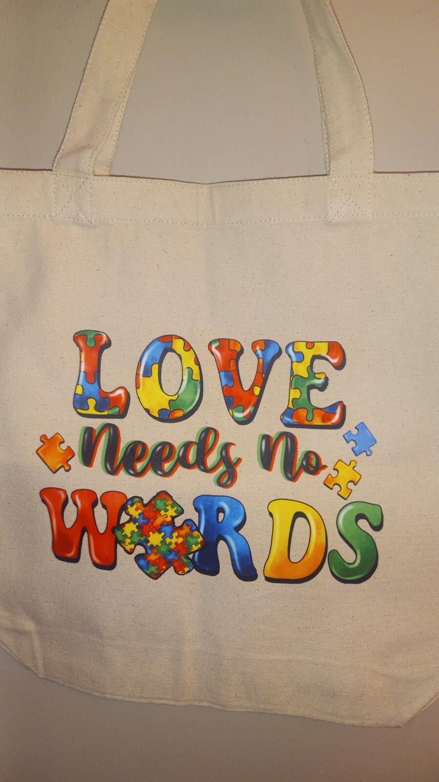 Love needs no word autism awareness tote bag This stylish tote bag is perfect for any fashion-forward woman! With its spacious interior and sleek design, this bag is perfect for carrying all of your daily essentials. The bag is made with high-quality materials, ensuring that it is both durable and long-lasting. Whether you're heading to work or running errands, this tote bag is the perfect accessory to complete any outfit. Its versatile design makes it suitable for any occasion, while its spacious interior ensures that you can carry everything you need. So why wait? Add this beautiful tote bag to your collection today!