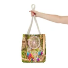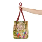 Love this tote—it's stylish, sturdy, and perfect for daily use! The print quality is amazing, and the multiple handle colors let me match my vibe. The double-stitched seams and laminated lining make it super durable, while the medium-weight fabric feels just right. Highly recommend for anyone who wants a functional yet fashionable bag!