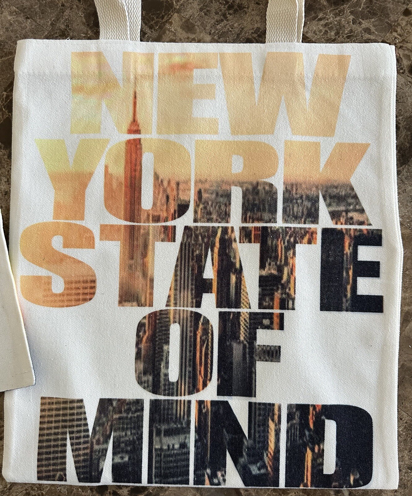 Beautiful New York skyline custom made tote bag with matching beautiful New York skyline small bag. Dimensions of large tote bag 12.5in wide and 14.5in length. Small bag 8in wide and 6in length.