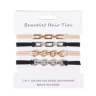 Features: Bracelet Hair Ties With Black Elastic Looks On Your Wrist,Elastic HairTies,Bracelet Scrunchie,Boho Hair Ties,Bracelet Ponytail Holder,Bracelet Elastic Bands,Hair Scrunchies,Ponytail Holder,Hair Tie,Hair Rope,Elastic Bands For Hair Ties,Elastic Hair-ring Versatile Bracelet Hair Ties: Wear it alone hair ties or bracelets. They are also easily with other jewelry for uniquely fashion-forward look. Elegant and Pratical Hair Ties Bracelet: Modern and functional designs, Looks great on your wrist and in your hair. No Damage Hair Ties: made of soft nylon cotton material, gentle to use, will not be tangles with your hair and easy to remove. Wide Application: These bracelet hair ties are suitable for various occasions like travelling, family gatherings, holidays. Easy to wear with any daily outfit. Specifications: Material:metal Size:Approx. 5cm/1.97in Color:black/mixed-4/braid/button/chain Package Includes: package A:3pcs/set Bracelet Hair Ties package B:4pcs/set Bracelet Hair Ties note: Please allow 1-2cm errors due to manual measurement, make sure that you do not mind before you order. Due to the difference between different monitors, the picture may not reflect the actual color of the item.