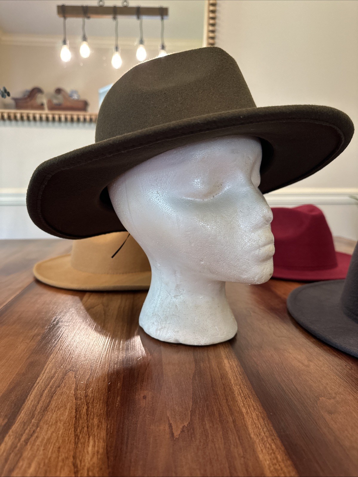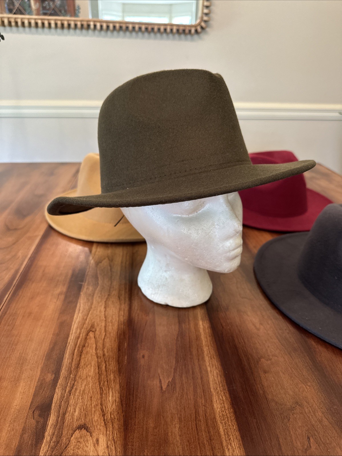 The product is a set of four Fedora hats in different colors, all sold at one price. These unisex Fedora hats come in one size and feature a colorful multicolor design, perfect for adding a pop of color to any outfit. With a stylish and classic Fedora design, these hats are a versatile accessory for any occasion. Whether you're looking to add a fun and vibrant touch to your wardrobe or simply want to try out different colors, this set of Fedora hats offers a variety of options for one affordable price. Thank you for looking