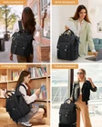 travel backpack carry on flight approved, personal item travel bag, travel backpack, backpack for women, travel bag, laptop bag, carry on bag, carry on backpack, backpack purse for women, airplane travel essentials, travel accessories, waterproof backpack, travel bags for women, college essentials Padded Laptop Backpack: The bottom of the backpack is padded and the inside where the laptop and tablet sits has padding as well. Good padding to protect the laptop yet not too bulky. Wide foam padded and the padded carrying adjustable straps make it comfortable to carry. Plenty of Pockets & Storage: The laptop backpack for women has plenty of pockets for different types of items. The college backpack bag can hold so much stuff and still keep it organized. The added small bag is a nice size to put a few small things or even a laptop charger. The added pouch bag can be used as electronics organizer, college pouch bag, travel organizer or cosmetic organizer. The college backpack itself has a front pocket with button fasteners and two side pockets. The side pockets are stretchy so you can be able to fit thicker water bottles. This womens laptop backpack has a double zipper closure and the handles also have a snap button for added security. The wide opening it has at the top. The top opens up wide & stays open. The zipper glides smoothly. With a hidden anti theft pocket on the back protect your valuable items from thieves. Dimension & High Quality Material: Work Backpack for Women Size: 16.5"H x 11.2"L x 5.5"W. Electronics Organizer Case Size: 7.7”L x 4.3”H x 2”W. Material: polyester. Comes with a dust bag for storage. The fabric feels comfortable and the magnetic closures are very strong. You can put your power bank inside your commuter backpack, it has an interior USB ready port to make it easy for you to charge your cell phone or any other portable battery operated device while on the go. Perfect computer backpack for all occasions. This backpack with laptop compartment has been great for work, travel, commuting, college, hospital, casual. Practical gifts for all the people you care about. It’s the best choice as gifts for men and women on any another festival.