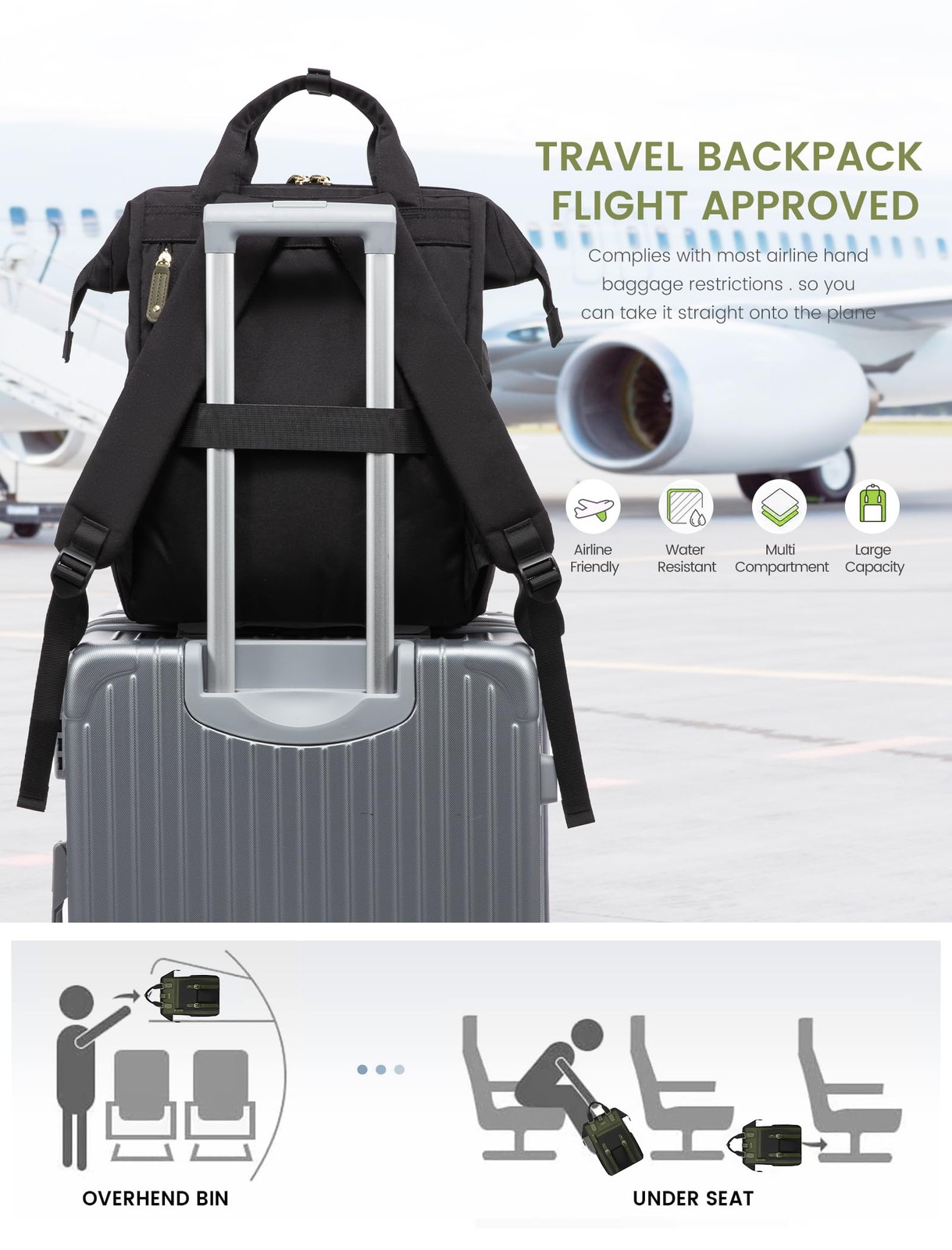 Perfect computer backpack for all occasions. This backpack with laptop compartment has been great for work, travel, commuting, nursing, hospital, casual. Practical gifts for all the people you care about. It's the best choice as gifts for men and women on any another festival. Stylish & Functional Design : This laptop backpack for women combines elegance with practicality. Featuring padded compartments for laptops and tablets, it keeps devices safe while maintaining a sleek design. Adjustable straps ensure comfort, and the wide opening with smooth-gliding zippers offers easy access to items. Perfect as a teacher bag or nurse bag. Ample Storage & Organization : Stay organized with this backpack purse for women. It boasts numerous pockets for various items, including a dedicated pouch for daily essentials like a laptop charger. The additional bag can be used as an electronics organizer, travel pouch, or cosmetic bag, making it ideal for travel or daily use. Practical College Backpack : Designed for convenience, this practical college backpack has a front pocket with button fasteners and stretchy side pockets for water bottles. The spacious interior is perfect for commuting, college, or business trips. It can double as a carry-on backpack, fitting comfortably under airplane seats. Secure & Water-Resistant : Enjoy peace of mind with this travel backpack's double zipper closure, snap button handles, and hidden anti-theft pocket. Made of water-resistant polyester fabric, it ensures durability and includes a dust bag for storage. Ideal for those who need a secure nurse bag, teacher bag, or office commuter backpack. Travel-Friendly & Versatile : This travel backpack carry-on flight approved is equipped with a luggage strap and trolley sleeve, making it perfect for travel, work, and daily use. Its airline-friendly design complies with most hand baggage restrictions. An excellent gift for teachers, doctors, nurses, new moms, and office commuters who need a versatile carry on backpack.