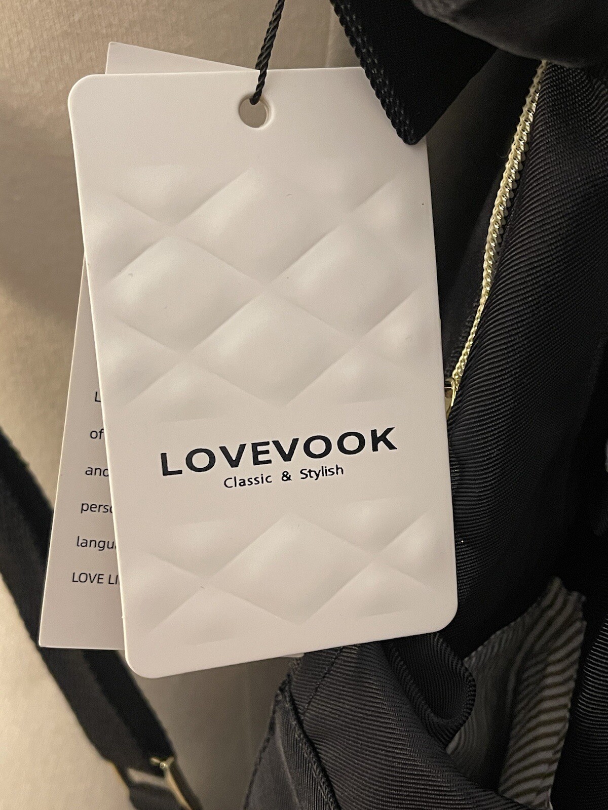 This stylish backpack/purse by Lovevook is the perfect accessory for any fashion-forward traveler. With a sleek black exterior made of durable nylon and accented with gold hardware, this 16-inch bag is both functional and fashionable. The adjustable nylon straps allow for comfortable wear, while the zipper closure keeps your belongings secure. The Lovevook backpack also features a USB port for convenient charging on the go. The spacious interior, lined with a sleek gray fabric, has plenty of room for all your essentials. Whether you're commuting to work or jetting off on a weekend getaway, this unisex backpack is the perfect choice for any occasion.