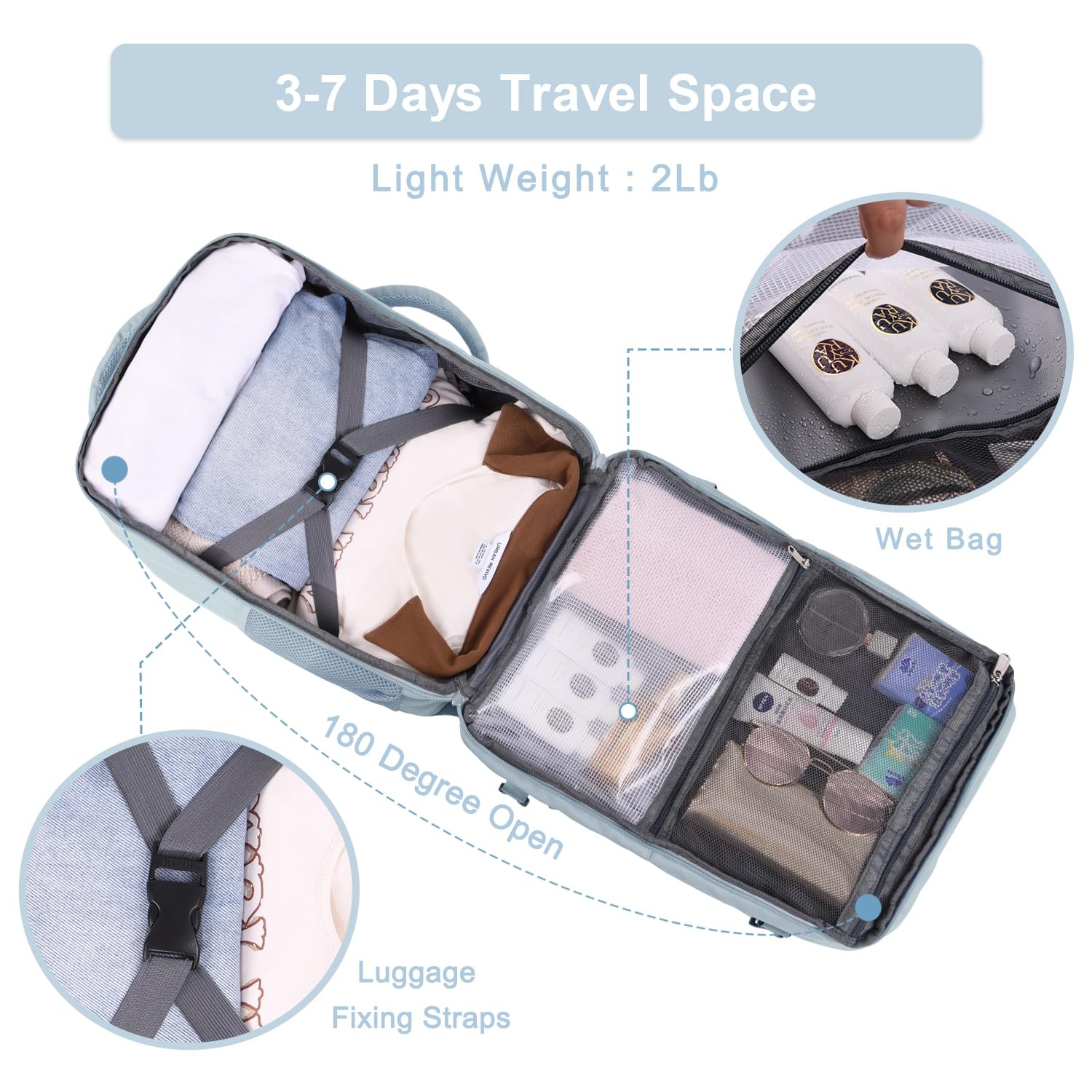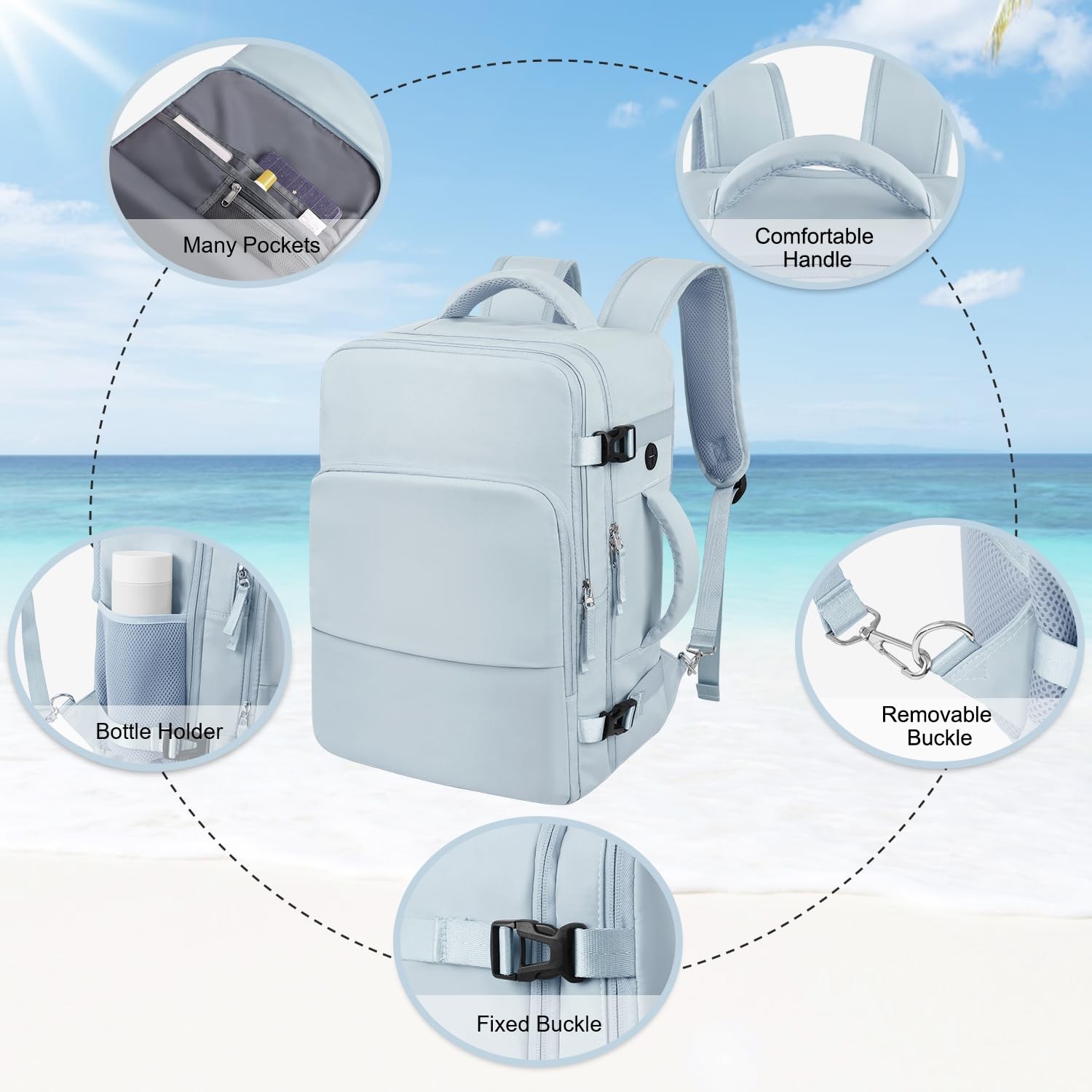 travel backpack for women, a high-end brand backpack, focusing on the development and design of women to travel. Our designed goal is to take the using experience of women at first place to explore and pursue a fashion, high efficiency and unique lifestyle. Shockproof The laptop backpack has good thick cushions in both laptop compartment and main compartment to protect laptop and other items inside the backpack. It is suitable for 16 inch laptop and 12.9 inch iPad. Lightweight This laptop backpack only has 2.1lb/0.95kg. Very lightweight and durable. Larger Capacity 35L big capacity for your 3-7 days travel. This travel backpack provides a dedicated space for your notebook, laptop, camera, clothes, bottle, wallet, etc. Waterproof The overall backpack for travel is made of waterproof fabric to keep you from getting wet in rainy days, and there is also a dry and wet separation compartment inside, which is convenient for you to store wet replacement clothes. Thickened and Wide Handle The shoulder straps of the travel backpack can be hidden and the thickened and wide top and side handles can be used as a handbag or carry on when use as a suitcase. Breathable Sponge The back of the casual daypack backpack is made of elastic, breathable sponge. It's breathable and can take away heat without overheating your back. THIS ITEM IS NOT INTENDED FOR USE BY CHILDREN 12 AND UNDER. Suitable for 16 inch Laptop: This laptop backpack with laptop compartment and iPad compartment can hold a 16 inch laptop and a 12.9 inch iPad. Cute college backpack provides a dedicated space for your pen, textbooks, laptop, camera, clothes, bottle, wallet, etc. At the same time, this backpack is slightly waterproof As Personal Item Airline Approved: Dimensions 16.93*11.8*7.87inch, light weight 2.1lb(0.95Kg), exclusive designed to fit the standard size on a flight, this carry on backpack can be opened 90-180 degree easily at the airport security. This versatile backpack meets airline such as Spirit, Easy Jet, Jet Blue personal-item requirements, and is available to put under the seat Be Handbag or Backpack: This backpack designed with hiding shoulder straps which can be easily stored away in zippered back panel, transforming backpack to briefcase. Luggage Strap provides a more flexible carrying experience Large Capacity: Internal structure like luggage fixed buckle, dry and wet separation bag and mesh bag to help you better organize things. This large backpack can meet your make-up bag, outfits, camera bag and gear, ensure your travel easily. A good companion for 3-7 days travel Widely Used: Carry on Backpack/ Duffle Bag/ Shoulder Bag/ Travel Bag/ Laptop Backpack/ Suitcase/ Briefcase. This backpack can be used in several different ways, served as a daily backpack, travel backpack or laptop backpack. Also, it is the best gift for husband, wife, father, mother, friends in festival.This laptop backpack can be a college backpack with laptop compartment for adults, perfect for back to college gift