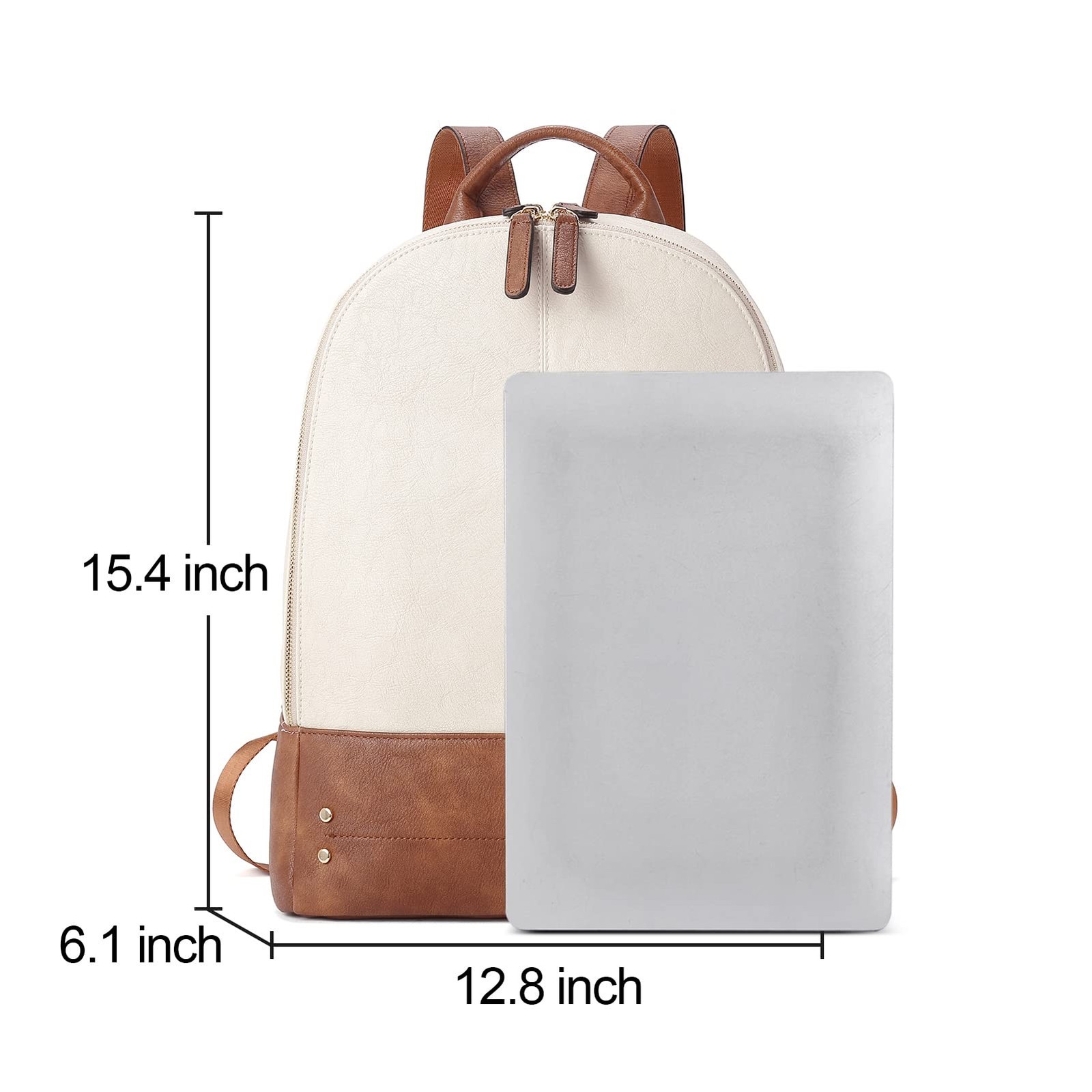 Leather Material: The Laptop backpack is made of PU leather, polyester lining, soft to touch and durable, uxurious detailing and immaculate finish, it is never out of classy.The professional design makes this leather backpack purse for women look vintage and elegant. Top U zips for convenience to get your devices. Approximate size:(L) 12.8" x (W) 6.1" x (H) 15.4", weight: 2.21 lb. This beautiful backpack purse is high grade gifts for your wife, friends on birthdays, Valentine's Day, Mother's Day, Christmas, New Year, graduation and anniversary. Special design: Simple and clean style design with gun color hardware and logo,fashion and vintage appearance.Reinforced stitching allows the backpack purse to withstand heavy loads.Besides, the laptop backpack for women is equipped with a luggage strap which fits most upright trolley handles and can be carried without hands and shoulder. Roomy Structured: 1 padded laptop compartment with 15.6" or under laptop (effectively protect your notebook from damage), 1 large main compartment, 1 inner zipper pocket, 3 inner slot pocket and 2 pen loops, 1 front zipper compartment, 1 back zipper pocket. After Sales Service: provides outstanding products and a wonderful buying experience. If you are not satisfied with our product or service for any reason, please contact us by email, we will try to solve all problems and make sure you are satisfied.