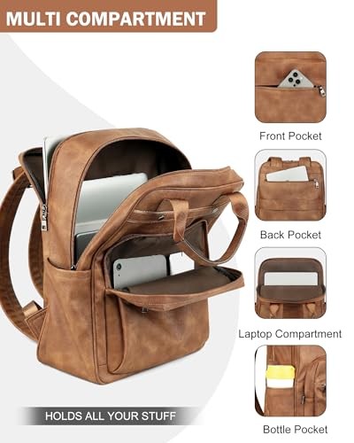 This stylish mocha brown leather laptop backpack is perfect for work, travel, or college! It has a spacious design with multiple compartments to keep everything organized. The quality material feels durable yet elegant, and the comfortable straps make it easy to carry. Fast delivery and great seller—highly recommend!