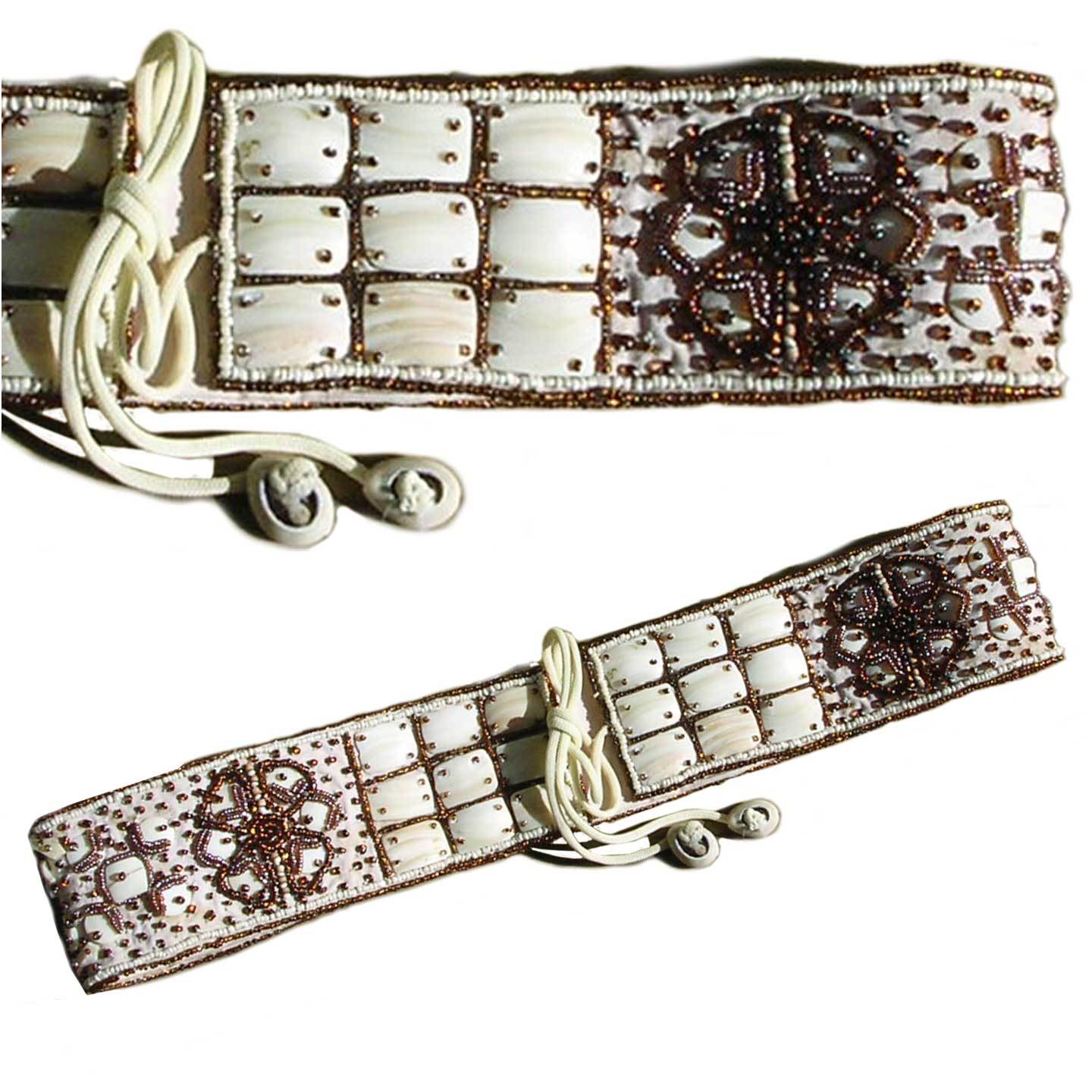 ATLANTA JUNCTION HANDMADE DECORATIVE NATURAL WOOD BELT w/ STAR CUT-OUTS Vintage Cocktail Jewelry HANDMADE DECORATIVE NATURAL WOOD BELT w/ STAR CUT-OUTS DESCRIPTION: NATURAL WOOD BELT w/STAR CUT-OUTS FROM INDIA... Top-off your outfit with this decorative handmade belt. Beaded belts, bone and wood belts are the Newest Fashion Choice. Add a little pizzazz to your outfits... Designs and Fashions influenced by old ancient cultures of India are very Big this season. From their wonderful chandelier earrings to colorful prints, mirrored and beaded materials to metal, bone and beaded and wood belts and bracelets. Condition: 100% Brand New Material: Natural wood and Leather Ties w/ wood beads Style: Decorative Tie Wood Belt Color: Beige and Browns and Creamy shades of the Natural wood grain Measures: 29" long not including ties (adjustable) -- Width 1 1/4" Package Includes: 1 Piece This item is brand new, never used and never worn. All sizes and measurements are approximate. Photos enlarged to show detail.