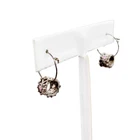 Size: 0.8" x 0.6" and the circle bead is about 0.3" Condition: Great preowned condition, light signs of wear and age, inspect photos closely. Keywords: Hoop Earrings Circle Rhinestone Bead Silver Tone Metal Pink Wire Flower Floral