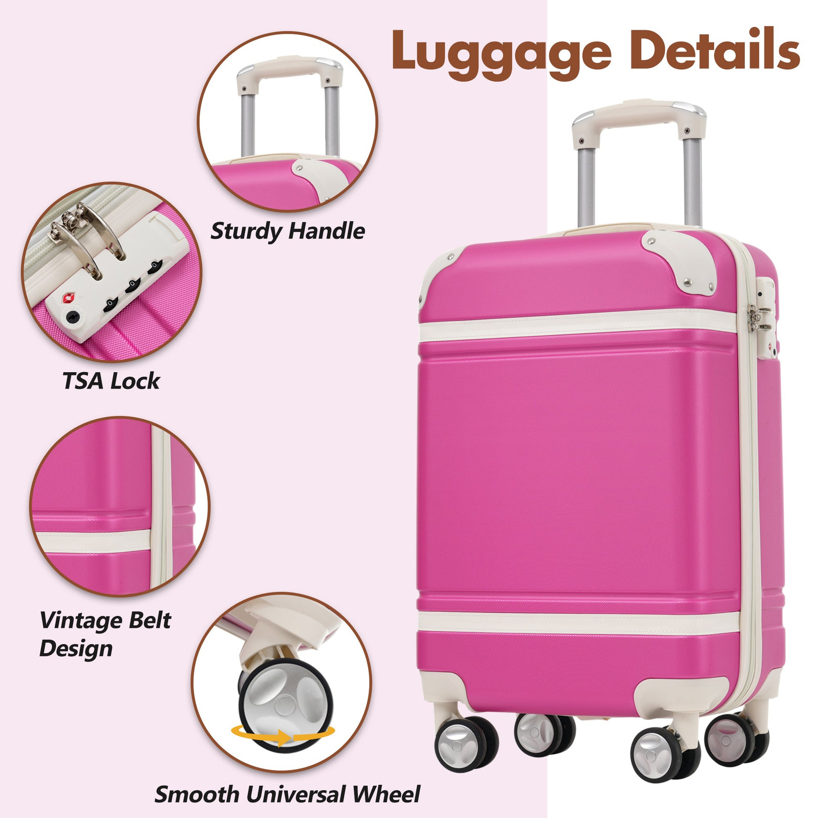 Specifications Place of Origin #originPlace# Main Color Pink Main Material ABS Dangerous Goods #dangerFlag# Dimensions & Weights Assembled Length (in.) Not Applicable Assembled Width (in.) Not Applicable Assembled Height (in.) Not Applicable Weight (lbs) Not Applicable Product Features Luggage set includes a 20-inch suitcase, a travel duffel bag, and a toiletry bag. The duffel bag has trolley sleeve with zippered pocket to pack your travel essentials, you can conveniently attach them to the adjustable suitcase handle to meet your needs. Full-Capacity Design Inside Suitcase: Large storage space and fully lined interior with zippered compartment for this hardside luggage sets to keep your items well organized. Low profile top and side handle provide for ease in handling. Safe:Side mounted TSA lock which allows only TSA agents to inspect your suitcase sets without damaging the lock. Zippers are not easy to be pierced by sharp tools, that protects your stuffs in luggage and privacy more better. Carry & Move:Silicone handles make it easier to lift your suitcases when going up and down stairs. Sturdy 3-step telescoping handle slso allow you to maneuver in tight spaces and provide effortless movement. Size:20 IN carry-on luggage dimensions(included accessories): 14.6'x9.1'x22.4'; Expandable travel bag dimensions :longest length: 23', shortest length: 16.1', width: 9.1', height(without extension): 11.1', expansion part height: 3.8';Toiletry bag dimensions: 10 'x5.5'x4'. Description We have perfected our hard case luggage collections, with a 100% ABS material molded body coveted. Instructions for Reset the combination lock: 1. The lock is Pre set to 0-0-0; 2. Push the button on the broadside, while in this position, set each number to your preference; 3. Release the button and your combination is now set; 4. Take care when setting the numbers to not release the button while setting it.