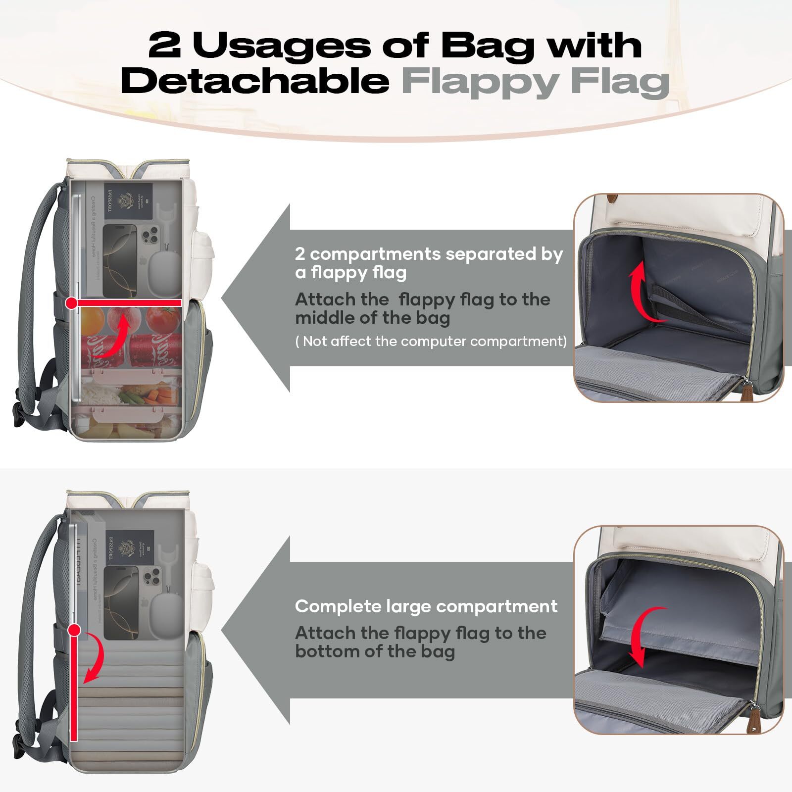Spacious and versatile design: The main compartment of work bag has a removable Velcro divider, allowing you to divide the main bag into two layers. Attach the Velcro to the bottom for a large single compartment or to the middle for two separate layers. The upper layer is ideal for clothes, headphones and so on, while the lower layer is perfect for lunch bags. Plus, there’s a dedicated compartment with excellent cushioning for 15.6-17.3 inch laptops. Convenient Dining Experience: Equipped with a detachable insulated lunch bag, our lunch backpack keeps food and drinks warm or cold for 3-5 hours, ensuring you can enjoy delicious meals on the go. Effortless Travel Convenience: Seamlessly attach the travel backpack for women men to your carry on luggage with the luggage belt for hands-free transportation. This lightweight carry on backpack for airplanes is thoughtfully designed for hassle-free travel and features a back anti-theft pocket to safeguard your valuables. Charging Port Design:This 17 inch laptop backpack features a USB and Type C charging port on the exterior, and built-in a charging cable inside, providing a convenient and accessible way to charge your phone while on the move. There are 2 kinds of interfaces, which can meet the charging needs of different devices. Versatile for Every Occasion: Whether it’s for travel, business trips, daily commutes, or as a thoughtful Christmas gift for family/friends/teachers/nurses, our backpack for women/men is the perfect choice for any occasion, combining practicality with style.