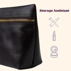 This makeup bag is perfect for travel—lightweight yet spacious enough to hold all my essentials. The leather feels durable and chic, and the zipper closure keeps everything secure. Love the compact size that fits easily in my purse or luggage while still organizing brushes, lipsticks, and more. Great quality for the price!