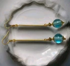 These beautiful TURQUOISE Glass Bead Earrings feature a round glass bead in a vibrant turquoise colour. The earrings are made of Yellow Gold Plated metal, with a long drop style and hook closure. Handmade in the United Kingdom, they are perfect for weddings, anniversaries, birthdays, or christenings. The earrings measure 7cm in length and have a nickel-free design, making them a stunning addition to any jewellery collection.