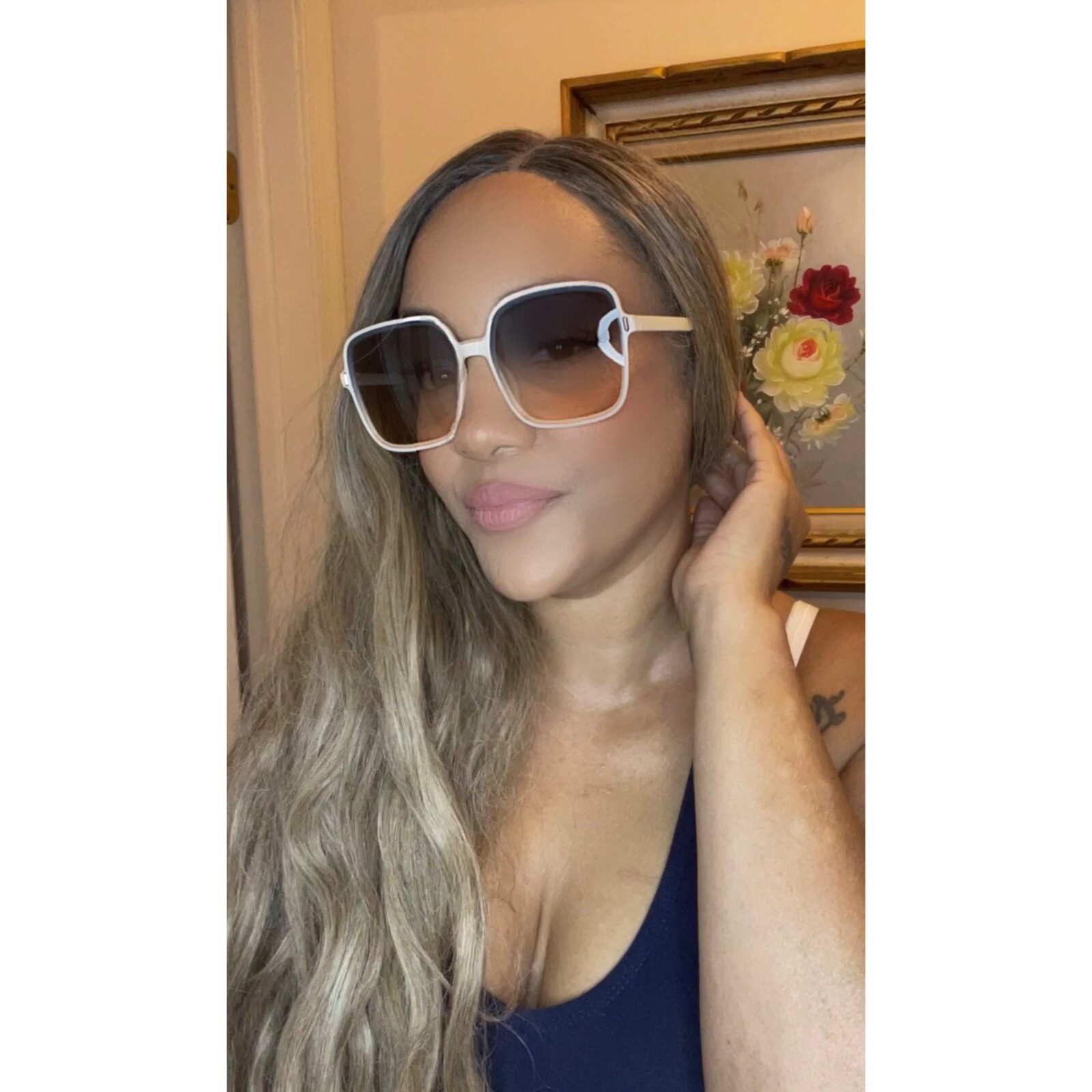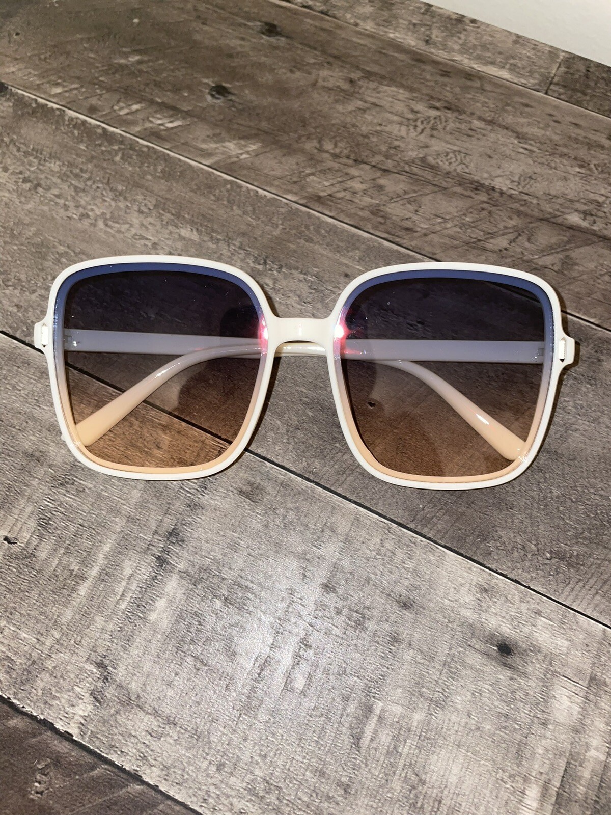 Square Oversized Sunglasses for Women Fashion Shades Gradient Stylish Popular Sunnies Brand new Sealed Carrying Case included White Blue combo ombré look