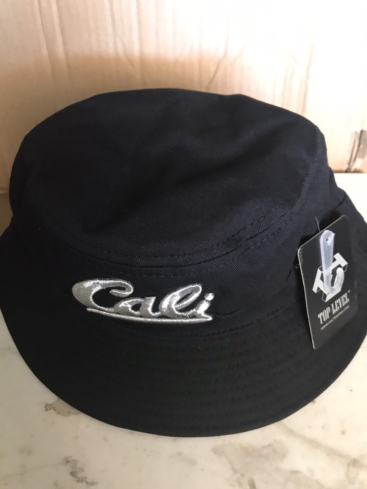 Cotton Cali bucket hat. Embroidered in Gold, white and silver . Condition is New with tags. Shipped with USPS First Class Package. Cotton