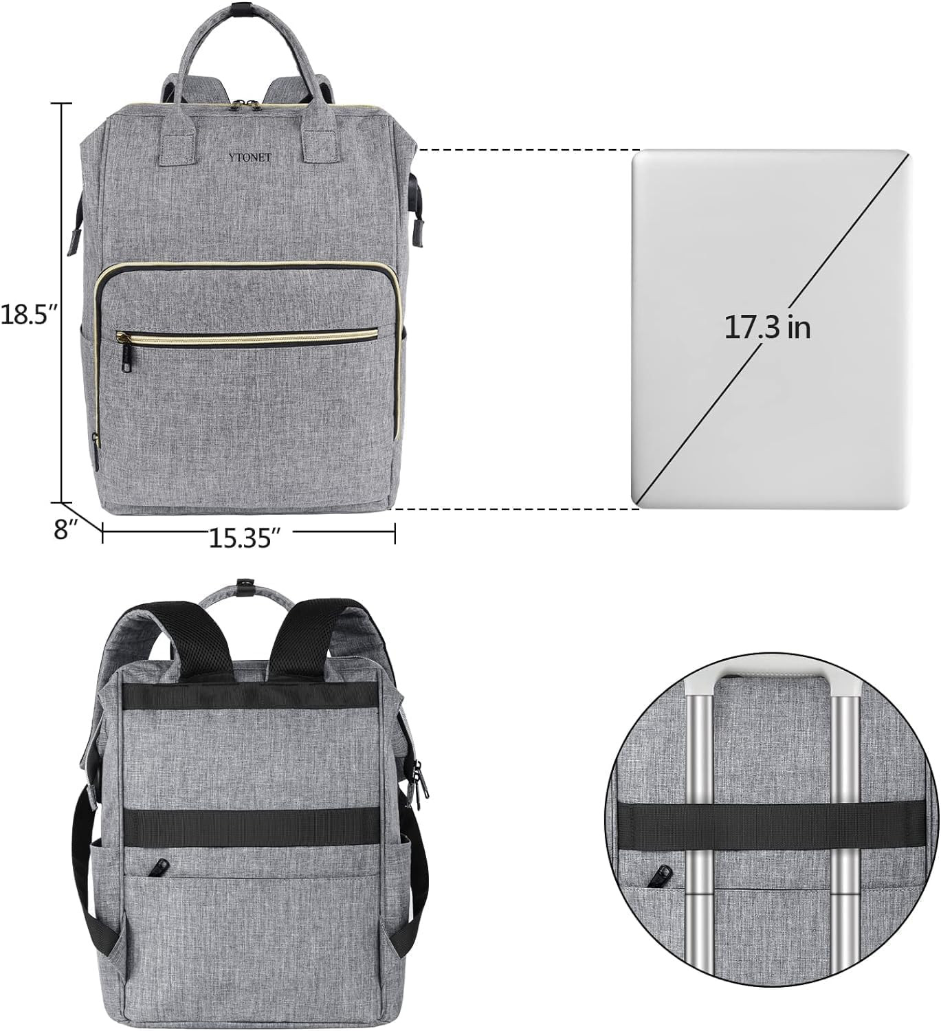 Laptop Backpack For Women: This laptop backpack keep your personal items well organized. The laptop compartment of womens bookbag can protect your 17.3 inch laptop or Notebook well. Lots of pockets for your Pad, books, water bottle, etc. Womens backpack provide storage for college supplies. Front compartment of backpack makes your item easier to find. This 17 inch laptop backpack can also for your travel needs Flight Approved & Safty: Work bookbag for women approved by most airlines, can hold your personal items and work essentials. This anti theft backpack have an anti-theft pocket in back to protect your wallet. RFID pocket of personal item nursing bookbag can protect your personal information. Back-side built-with luggage strap of nursing backpack place the bookbag for women on the luggage. The nurse backpack makes your work and business more convenient Laptop Backpack Women USB Charging Port: Nurse backpack for women equipped with Usb charging port, make it easy to access charging your phone, or whatever you need with an external USB charging port to your own power bank(not included) on go especially work and bussiness, nurse backpack for work can save lots of trouble and free your hands to more funny things. it can be backpack nurse and nurse work backpack Comfortable Laptop Backpack Purse: Backpacks for teachers is made of water resistant polyester fabric and sturdy zippers. Wide top open design of work backpack keeps mount spacious and big enough and easy access to take in /out your items. Also, the adjustable padded shoulder straps of under seat backpack for work can release your pressure on the back and shoulder in a long way walk and train, get rid of tired Great Gift Ideal: Womens backpack for work is used for office, working, college, shopping, dating and commuting. Flight approved womens work backpack is suit for Ladies gift, Friendship gifts, Graduation gifts, Birthday gifts, Work Gifts, Back to School Gifts, College graduation gifts for her, Teacher gifts, Nurse gifts, Gifts for friends, Halloween gifts, Thanksgiving gifts, Valentine's Day Gift