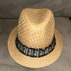 Add a touch of sophistication to your wardrobe with this stylish straw fedora hat. Crafted with high-quality materials, this hat is perfect for any occasion. The brown color and classic fedora style make it a versatile accessory for any outfit. Designed for men of all sizes, this hat is a must-have for any fashion-forward individual. The straw material adds a unique texture and breathability that sets it apart from other hats. Perfect for a day out on the town or a special occasion, this fedora hat is sure to turn heads. Gently used with minor wear