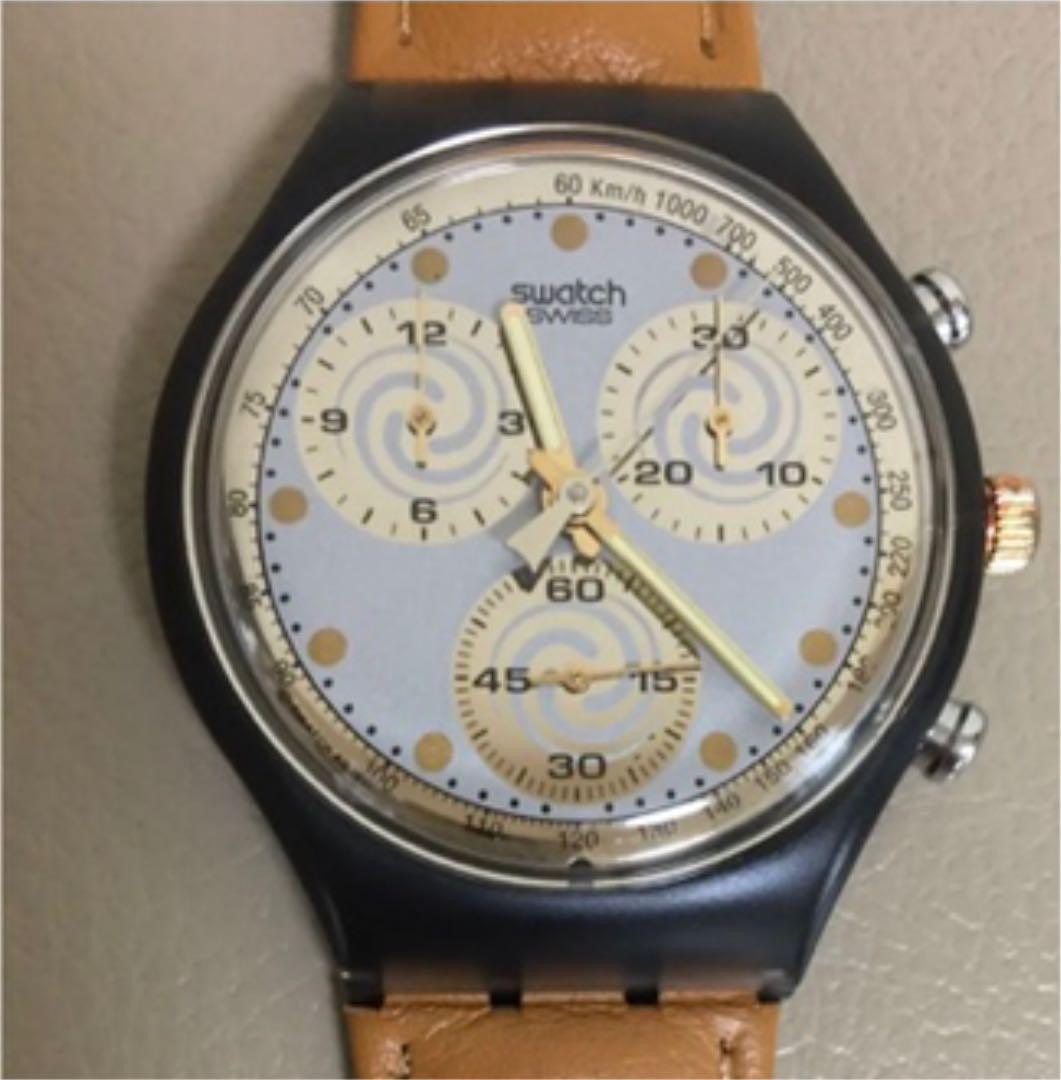 Love this classic Swatch! Even after years of storage, it keeps perfect time and looks sharp with its gray dial and genuine leather band. The chrono works but resets slightly off, which adds to its vintage charm. The cracked case doesn’t affect the watch itself—still a fantastic find with its original warranty. A true piece of '93 nostalgia that’s ready to wear!