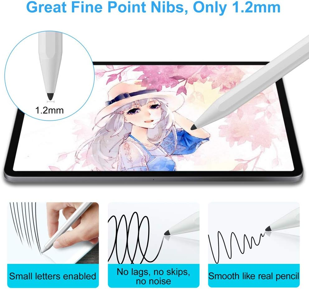 Especially Designed for iPad 2025-2018: Only compatible with iPad 11th(A16),iPad Pro 11/13-Inch M4,iPad Air 11/13-Inch M2/M3,iPad 10th/9th/8th/7th/6th, iPad Air 5th/4th/3rd, iPad Pro 12.9" 6th/5th/4th/3rd, iPad Mini A17 Pro/6th/5th. NOTICE: Not Compatible with iPad Pro 12.9" (1st Gen and 2nd Gen), iPad Pro 9.7", iPad Pro 10.5",iPad 5th Gen,iPad mini 4,iPhone, Android, Microsoft devices Native palm rejection: Instead of lifting your hand or wearing the gloves, this stylus pen for iPad allows to rest your hand on the screen naturally like pen and paper with no interruptions to writing, drawing, or other activities so you can focus on the task at hand High accuracy and fluency: Premium-made pen nib is accurate down to each pixel as precise as the real pen. Newly anti-offset and anti-break point technology of the pencil for iPad can help reach where you want smoothly and accurately. Great for writing, taking notes, marking up, drawing, and more. NO tilt sensitivity; NO pressure sensitivity Magnetic Adsorption: The magnetic design keeps this stylus pen from rolling and losing while resting, making it easier and more convenient to store and carry in situations such as business trips,meetings and travel.Does not support magnetic:iPad Air 3rd,iPad 6th/7th/8th/9th/10th generation,iPad mini5.Wireless charging is not supported Touch Activated & Type-C Fast Charge: Just tap the top of the stylus to turn it on and off. 20 hours of continuous operation,90 days of standby time and automatic "Sleep Mode" after 5 minutes of inactivity to help conserve battery power Stylus pen for iPad