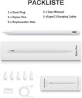 Stylus Pen for Ipad 11Th&10Th&9Th Generation,Fast Charge Pencil for Apple Ipad,Palm Rejection,Tilt Sensitivity,Compatible with 2018-2025 Ipad11/10/9/8/7/6Th,Pro 13" M4/12.9"/11",Air 3/4/5/M2,Mini 5/6 【Compatible with 2018-2025 iPad & iPad Pro】The pen for ipad 10th generation supports Apple iPad 2018 releases and later: iPad Pro 13" (M4),iPad (11/10/9/8/7/6 gen), iPad Air (M3/M2/5th/4th/3rd gen), iPad Mini (5/6 gen), iPad Pro 11" (1/2/3/4 gen) and 12.9"(3/4/5/6 gen). Does not work with iPhone or Android Phone, Android Tablet, Microsoft devices. Note: Please check the correct iPad model before ordering. 【High Precision & Smooth】The ipad pencil 10th generation is equipped with a 1.5mm POM tip,16.5 cm long, weighing 16 grams,more accurate, more sensitive, no lag, no jump, no scratch, no delay to make the writing and drawing more smooth.In addition,this ipencil 2nd generation includes 4 replacement pen tips, which significantly extend the life of the touch pen.【 Note 】The stylus pen no pressure-sensitive design. 【Palm Rejection & Magnetically Design】 The apple pencil 10th generation ipad with palm rejection, you can rest your palm on the screen without an uncomfortable glove.Providing a natural writing feeling as writing on paper without delay, giving you a comfortable feeling when writing and drawing.The apple ipad pencil attached to the iPad side face magnetic design, no more rolling and lost, more portable, and easier to keep. 【Faster Charge & LED Power Indicator】This apple pencil 2nd gen is equipped with a USB C charging port and a 125mAh built-in battery, which can be fully charged in just 30 minutes and work continuously for 10 hours.3 indicators design can clearly see power of the stylus pen, timely charge, and avoid automatic shutdown due to lack of power during use. 【Tilt Sensitivity & Long Press Activated】iPad pencil 10th generation, simply tilt to adjust line thickness,very suitable for sketching,drawing, and marking.Tilt technology makes your writing and painting more free than ever before.This stylus pen for ipad 10th generation is easy to use,without the need to connect Bluetooth or apps.Simply long press the top of the stylus for about 3 seconds until the blue indicator light comes on,and the stylus will turn on and enter work mode or turn off work mode. Product Description 1 Palm Rejection 2 Magnetic Adsorption 3 Tilt Sensitivity 1 Creating Digital Art 2 Document Signing 3 Classroom Learning 4 Playing Games Item model number f7afd2d8-37b1-41d2-9fbc-549bb2f2bd90 Item dimensions L x W x H 6.5 x 0.35 x 0.35 inches Are Batteries Included Yes Battery Average Life Standby 90 days Color White Product Dimensions 6.5 x 0.35 x 0.35 inches Material Aluminum Country of Origin China Compatible Devices function(f) {var _np=(window.P._namespace("DetailPageProductOverviewTemplatesJava"));if(_np.guardFatal){_np.guardFatal(f)(_np);}else{f(_np);}}(function(P) { P.when('A').execute(function(A){ A.on('a:truncate:po-attribute-truncate-6:updated', function(data) { var isTruncated = !data.truncateInstance.getIfTextFits(); var seeMoreElement = document.getElementById('po-attribute-see-more-id-6'); if(seeMoreElement) { seeMoreElement.style.display = isTruncated ? '' : 'none'; } }) }); })); Compatible with 2018-2025:iPad 11th/10th/9th/8th/7th/6th Generation,iPad Pro 11" 1st/2nd/3rd/4th,iPad Pro 12.9" 3rd/4th/5th/6th Gen,iPad Pro 13"(M4),iPad Air 3rd/4th/5th Gen,iPad Air 11"(M2),iPad Air 13"(M2),iPad Mini 5/6 Gen. See more Item Weight 15.42 g Batteries 1 Lithium Polymer batteries required. (included) Batteries Required? Yes Number of Batteries 1 Lithium Polymer batteries required. (included) Size 6.5 x 0.35 x 0.35 inches 0.35 inches x 6.5 inches x 0.35 inches. Weight: 15.42 g Shipping from the USA All of our products are shipped from the USA, ensuring quick delivery to your destination. Payment We offer the following payment methods: PayPal, credit card, bank transfer, and eBay's secure payment system. Free Shipping & Free Returns Shipping within the USA is FREE. Additionally, any return is absolutely free for you. Risk-Free Purchase You have the option to return an item within 30 days without any justification. We cover the return shipping costs! Fast Shipping We ship immediately upon receipt of payment. Generally, the package is delivered within 2-3 days in the USA. If it takes longer, we will contact you. Quality and Costs Made in Europe, USA, China No customs fees or additional charges Total satisfaction guarantee Invoice with declared VAT available upon request in .pdf format Feedback Your feedback is very important to us. After you pay for your purchase, you will automatically receive positive feedback from us.