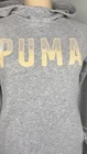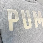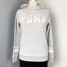 Show off your sporty side with this Puma Women's Heather Regular Fit Logo Hoodie in Light Gray. The pullover hoodie features long sleeves and a hood with drawstrings, making it perfect for any season - Winter, Summer, Fall, or Spring. The hoodie has a solid pattern with a graphic print on the front that showcases the Puma logo. Features/Style: - Long Sleeve - Front Logo - Side Pockets Size: S Color: Light Gray Measurements (approximately, laying flat): Pit to Pit- 18", Waist- 16,3", Sleeve Length- 22" Condition: NWT, Smoke Free Home
