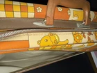 This unique vintage child's suitcase from the 1970s is perfect for your little one's travel adventures. The bright yellow and orange colors along with the playful lion, elephant, and hippo design will surely make it a talking point at the airport. The sturdy canvas material and lightweight design make it easy to carry while the extra compartments and zippers provide ample storage space for all your travel essentials. The handle and soft casing make it easy to lift and transport. This true vintage piece is a must-have for any travel collection and is sure to bring back some nostalgic memories. Please examine photos closely for detail/quality/condition and ask questions before purchase. No key. Missing rivet at the bottom visible in photos. Ships from a smoke-free, pet-free home.