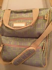 Liz Claiborne Luggage/Tote Bag is great for that overnight trip or weekender, airline carry-on bag. Lots of storage space and multiple pockets to organize your stuff. Comes with Two Long straps, one is long for crossbody and the other is shorter for shoulder use. Both are adjustable. Very good clean condition, Like NEW. Lime Green/ Light Gray Liz Claiborne Fabric Print. Tan Faux Leather, Goldtone Hardware. 2 Outer Zipper Pocket Pouches, Grey Liz Claiborne Lined Interior. Zipper Pocket, 1 Slip Pocket, 3 Inside Slip Pockets. 17" Long x 16" High x 5 1/2" Deep. Handle Strap Drop is 8/12" Adjustable additional shoulder strap. Smoke free pet free household. Multiple shipping options your choice. #carryonluggage #luggage #travelaccessories #overnight #weekender #carryon #airline #LizClaiborneluggage #traveler #frequentflyer #suitcase