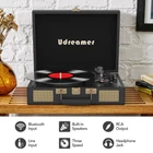 PU Leather Suitcase Record Player: The record player is made of classic PU leather, combined with the vintage metal buckle, exquisite and stylish, housed with a carry handle, it is easy to be carried anywhere Bluetooth Input and Line In: Designed with Bluetooth input version in 5.3, the vinyl record player can pair with your phone Bluetooth faster and more stable. You can play the songs from single-way devices via a 3.5mm line input jack on the record player Built-in Speakers and External Speakers: The built-in speakers in the turntable allow you to experience retro music without external speakers. You can also connect your external active speakers via RCA output 3 Speed & Belt Driven&Headphone Jack: The record player supports 3 Speed:33,45,78rpm and plays records in sizes of 7”,10”, and 12”.With a 45 RPM adapter, you can freely play 45-speed records. The belt-driven system greatly delivers original natural sound. The headphone jack allows you to enjoy music without bothering others Arm Lifter&100-240V voltage: Stylus arm lifter protects your record from scratching. 100v-240v voltage is suitable for more geographical use