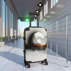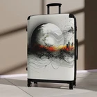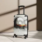 Traveling is best done in style, and suitcases help anyone do exactly that. Available in multiple sizes to accommodate your needs, they come with an adjustable handle, 360-degree swivel wheels, a safety lock, and an adjustable handle for carefree movement through airports and cities. To achieve high-resolution designs, prints go on a canvas surface that is encapsulated in the PC shell. Please note: Your design is printed on a canvas that may slightly crease near the suitcase's edges. .: Material: polycarbonate front and ABS back hard-shell .: Adjustable telescopic handle .: Removable inner lining under a black rubber seal .: Two inner pockets .: Four double-wheels with 360° swivel .: Built-in lock