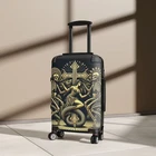 Traveling is best done in style, and suitcases help anyone do exactly that. Available in multiple sizes to accommodate your needs, they come with an adjustable handle, 360-degree swivel wheels, a safety lock, and an adjustable handle for carefree movement through airports and cities. To achieve high-resolution designs, prints go on a canvas surface that is encapsulated in the PC shell. Please note: Your design is printed on a canvas that may slightly crease near the suitcase's edges. .: Material: polycarbonate front and ABS back hard-shell .: Adjustable telescopic handle .: Removable inner lining under a black rubber seal .: Two inner pockets .: Four double-wheels with 360° swivel .: Built-in lock