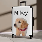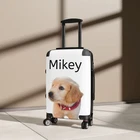 Traveling is best done in style, and suitcases help anyone do exactly that. Available in multiple sizes to accommodate your needs, they come with an adjustable handle, 360-degree swivel wheels, a safety lock, and an adjustable handle for carefree movement through airports and cities. To achieve high-resolution designs, prints go on a canvas surface that is encapsulated in the PC shell. Please note: Your design is printed on a canvas that may slightly crease near the suitcase's edges. .: Material: polycarbonate front and ABS back hard-shell .: Adjustable telescopic handle .: Removable inner lining under a black rubber seal .: Two inner pockets .: Four double-wheels with 360° swivel .: Built-in lock