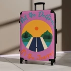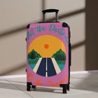 Traveling is best done in style, and suitcases help anyone do exactly that. Available in multiple sizes to accommodate your needs, they come with an adjustable handle, 360-degree swivel wheels, a safety lock, and an adjustable handle for carefree movement through airports and cities. To achieve high-resolution designs, prints go on a canvas surface that is encapsulated in the PC shell. Please note: Your design is printed on a canvas that may slightly crease near the suitcase's edges. .: Material: polycarbonate front and ABS back hard-shell .: Adjustable telescopic handle .: Removable inner lining under a black rubber seal .: Two inner pockets .: Four double-wheels with 360° swivel .: Built-in lock