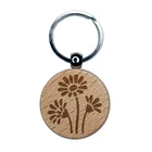 Summer Daisy Trio Engraved Wood Round Keychain Tag Charm