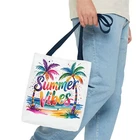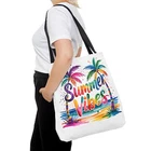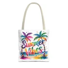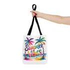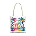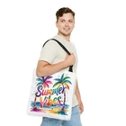 This tote bag exudes summer vibes with a lightweight and durable design, perfect for carrying essentials to the beach or a picnic. Ideal for those who love a casual and laid-back style. Relevant for summer outings, beach trips, and picnics. Product features - 100% Polyester body for strength and quick drying - Reinforced stitching on handles for durability - Boxed corners for extra space - 5 color handle options for customization - Available in 3 sizes to match customer needs Care instructions - Remove all items from the bag before cleaning. Suggested to pretreat visible stains with stain remover. Mix warm water with laundry detergent and clean the bag with terry washcloth or a soft bristle brush. Let the bag air dry.