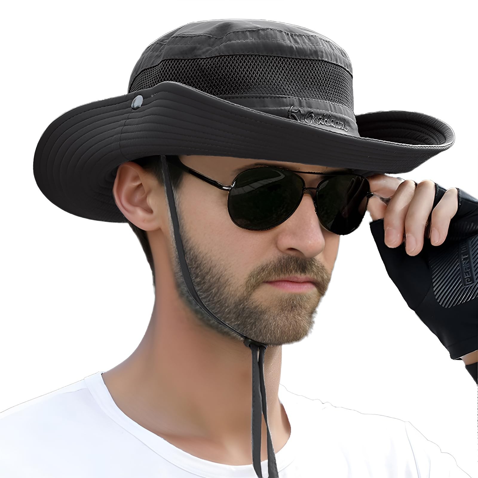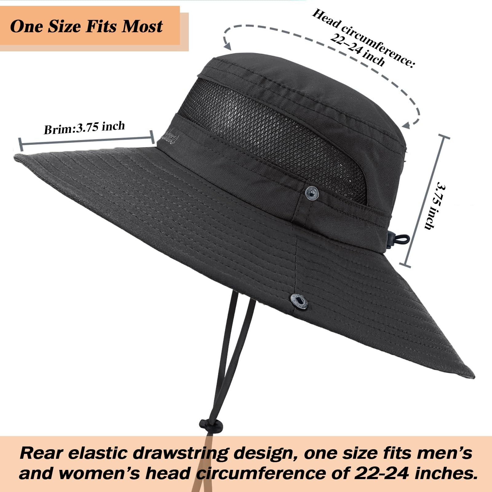 Fishing hat for men and women is made of carefully selected 100% polyester, super lightweight, waterproof, quick-drying, durable and will stand the test of time. 360° mesh vent allows airflow to circulate around your head, keeping you cool and comfortable even on hot summer days. Must have for anyone who spends any time outside under the sun. This sun hat offers an impressive UPF50+ rating, which means it provides excellent protection against harmful UV rays. Whether you're out fishing by the lake or hiking under the sun, this hat ensures that your skin is shielded from potential sun damage, reducing the risk of sunburn and long-term skin issues. Due to prolonged transportation, the hat may have creases, please steam iron the brim back to straight. 【Breathable & Comfort】 Fishing hat for men and women is made of carefully selected 100% polyester, super lightweight, quick-drying, durable and will stand the test of time. 360° mesh vent allows airflow to circulate around your head, keeping you cool and comfortable even on hot summer days. Must have for anyone who spends any time outside under the sun. 【Sun Protection】Men's and women's sun hat features excellent Anti-UV and UPF 50+ sun protection, which keep your protected from the damaging rays. The wide brim design effectively shield your face, neck and eyes from strong sun. Whether you're out fishing or hiking under the sun, this hat makes it much better to deal with those crazy hot days! Absolutely a reliable companion for outdoor activities under intense sunlight. 【One Size Fits Most】Casual comfy fit safari hat for men and women. Rear adjustable elastic drawstring design fits most head circumference 21.6"-23.2". Freely adjustable chin strap holds hat in place even in windy or rainy days. Inner sweatband of the men's bucket hat absorb sweat efficiently. Foldable side snaps let you switch freely in cowboy style hat and normal hat in different occasions. 【Foldable & Portable Design】The versatile foldable design allows the wide brim hat to be easily folded and packed into bags or knapsack, making it incredibly convenient for on-the-go storage and travel. Whether you're on a hiking trip, a safari adventure, or simply enjoying a day at the beach, this sun hat can be conveniently carried along and deployed whenever you need sun protection. 【Widely Use】The well-designed summer outdoor hat is great for camping, hiking, gardening, traveling, fishing, boating, hunting, safari, beach, pool, golf, doing yard work and field research or any other outdoor activities. If you're looking for a fashion and practical hat that will keep you protected from all those harmful rays then this boonie hat will do just that.