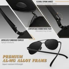 ANTI UV400 & POLARIZED LENS - UV400 protection lenses block 100% harmful UVA & UVB rays, keeping your eyes healthy. Polarized function filters the glare, eliminates reflected light and scattered light, restoring true color. HIGH QUALITY MATERIAL - The frame is made of high quality ultralight metal, which is strong, impact resistance, lightweight. The lens is made of polycarbonate(high temperature resistance, ultra light, super impact resistance), which means your sunglasses can be used for long time without scratched or broken. CLASSIC DESIGN & UNIQUE DECORATION - The sunglasses are designed classic pilot frame, combining hexagon printed on the temple, which is unique and classic. PERFECT ALL ROUNDER - sunglasses is the perfect choice for outdoor sports and activities such as walking, cycling, driving, shopping, travelling, hiking, and is suitable as fashion accessories and daily wear all year round. These sunglasses with box package are also a wonderful festival gift for friends and family! NO RISK TO TRY - Customers can return and get refunded in case the purchasing is not satisfactory for any reason in one month. You have no risk to try and we will provide you the best service!
