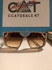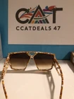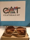 Add a touch of retro style to your outdoor look with these multicolored sunglasses. The square-shaped frame with striped pattern and lightweight plastic material make them comfortable to wear all day long. These sunglasses boast anti-reflective and UVA protection lenses in a brown color that enhances your vision and protects your eyes from harmful rays. The vintage-inspired sunglasses have an unknown model, which makes them unique and perfect for those who love to stand out. They were made in China, and their temple length is unknown. These sunglasses are perfect for any outdoor activity, whether you're going for a walk, a picnic, or a day at the beach.