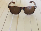 Up for sale are some new, classic brow-line sunglasses. The frame color is tortoise and the lens are black. The sunglasses are are light, comfortable, and they also have a substantial feel to them. The quality is good and the price is better.