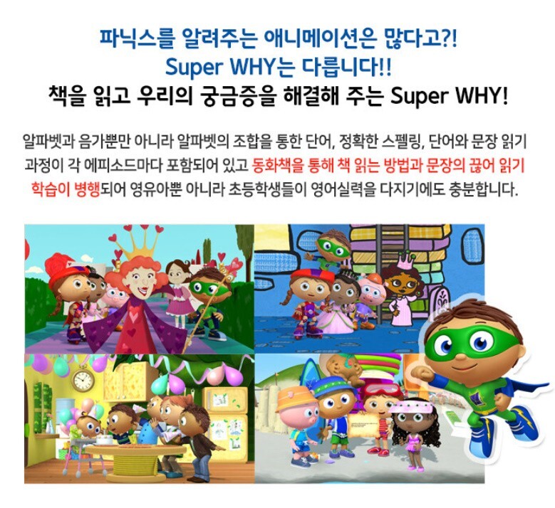Super Why Original Volume 1 & 2 DVD 20-Discs SET EBS Cartoon for Learning Kids Record Format: 10 DVDs + 10 DVDs Set Language: English, Korean Subtitles: English, Korean, No Subtitled Running Time: Around 480 minutes 20 Episodes Manufactured in Korea Importer/ Manufacturer : M & V Age recommendation: 4-10 years [Shipping] Economy Shipping 11~35 working days Standard shipping 10~25 working days Expedited shipping 3~10 working days [Returns] All returns for a refund must be UNOPENED and NEW CONDITION in their original box including all components. For the items refused due to customs tax and the items unclaimed by the buyer, round shipping will be on buyer's side. [Tax&Customs] Import duties, taxes, and charges are not included in the price or shipping cost. These charges are the buyer's responsibility.