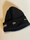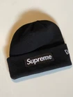 This Supreme New Era Box Logo Beanie in Black is a stylish and lightweight accessory for men, perfect for casual wear during the fall and winter seasons. The beanie features a solid black color with the iconic Supreme logo, designed in a one size fits all style with a stretchy material for a comfortable fit.