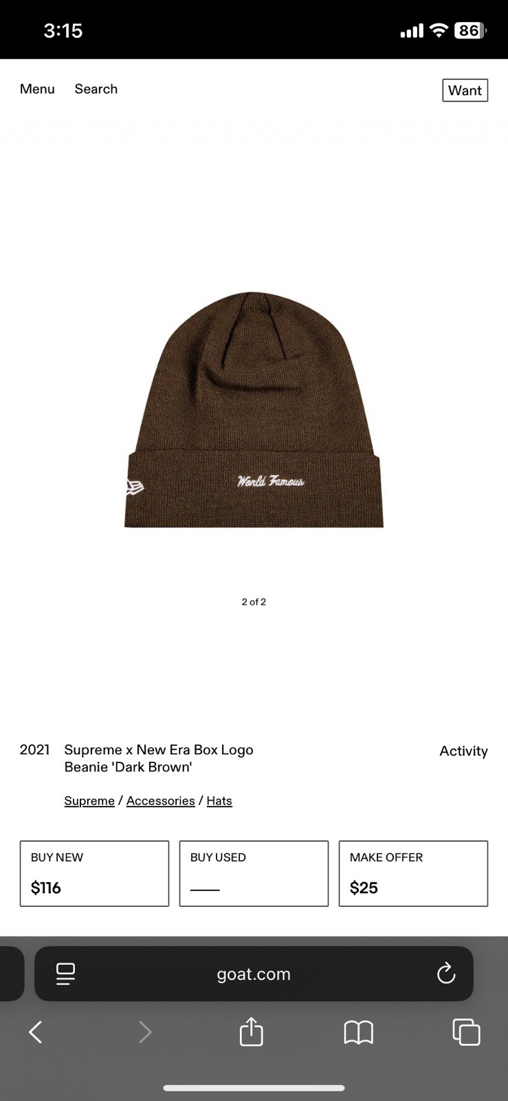 Dark Brown New Supreme x New Era beanie FW2021 $115 retailing