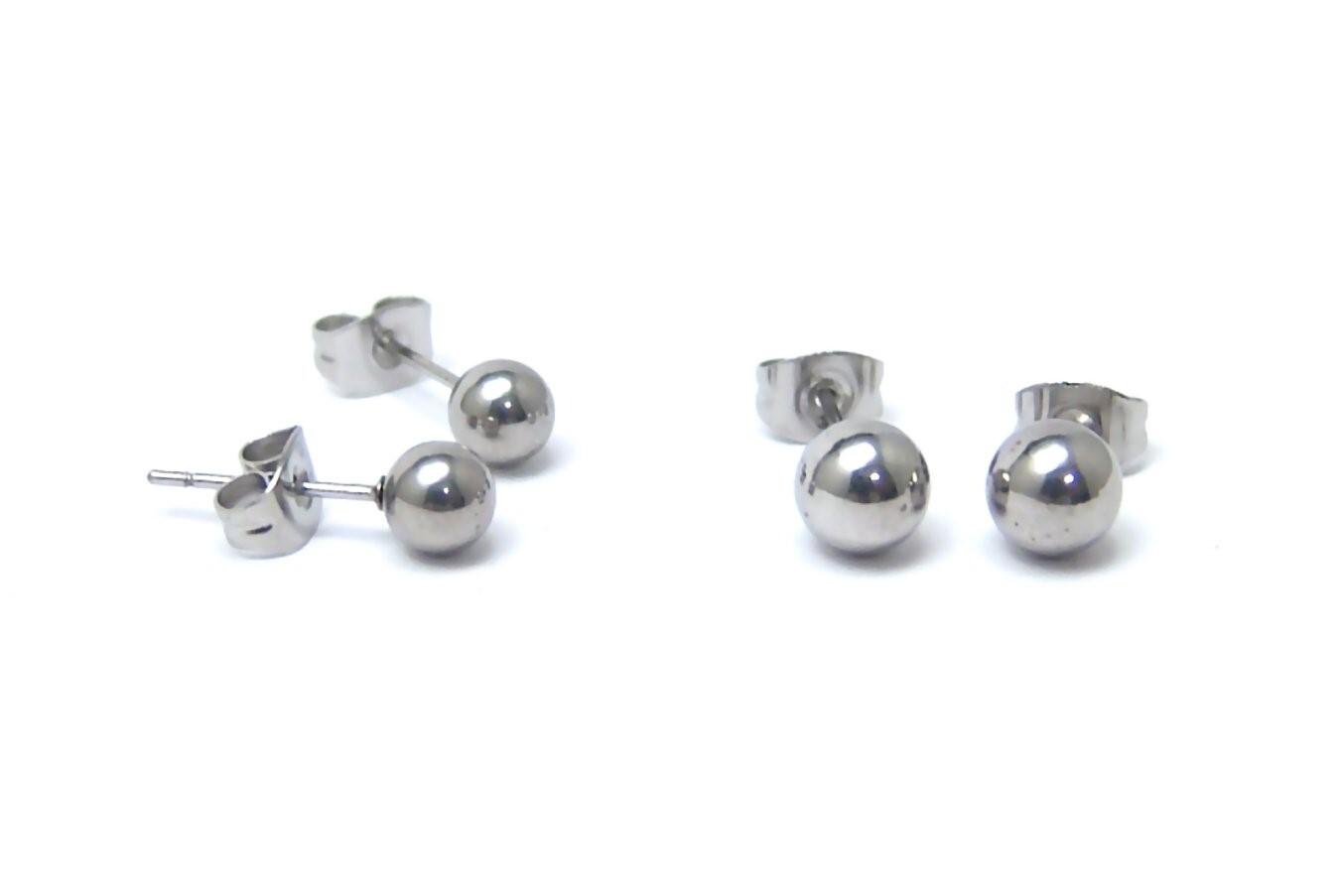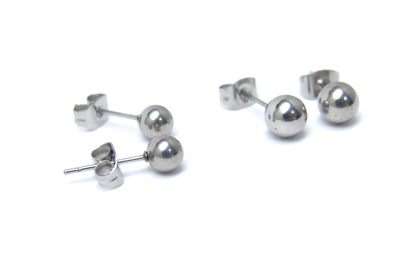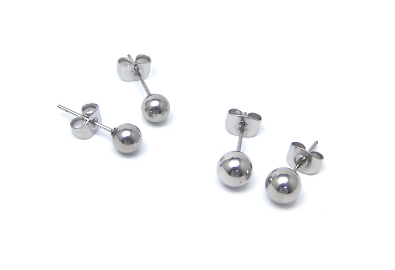 Ball Stud Earrings 2 Pair Surgical Steel Hypoallergenic 5 mm and 6 mm 2 Pair Ball Stud Earrings 316L stainless surgical steel 1 pair with 5mm and a second pair with 6mm Price is for BOTH pairs of earrings Sold by a USA seller in SW Ohio Colors may appear lighter or darker due to your personal settings. Our photos are taken under bright light to show the detail. Don't let your eyes trick you into assuming jewelry is larger or smaller than it really is, use the measurements to determine actual size and if the measurements don't "click" use a ruler to draw a box based on the measurements. Click here to view more from rtm1 Jewelry Powered by SixBit's eCommerce Solution