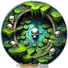 Swamp Land I Set of 6 objective markers Warhammer 40K and Age of Sigmar 4th Edition . This set features a swampy battlefield with skulls, military debris, wood & twisted vines. 40 mm (marked center circle) for simple measuring plus 3 inches to the edge Total diameter 192 mm or 7.57 inches 2 mm thin neoprene (mouse-pad) material Non-slip rubber backing Enhance your gaming experience with these high quality attractive objective markers. No more guessing if a model is in range. Thanks for shopping & happy gaming!