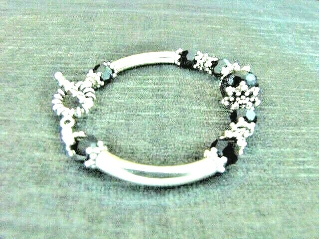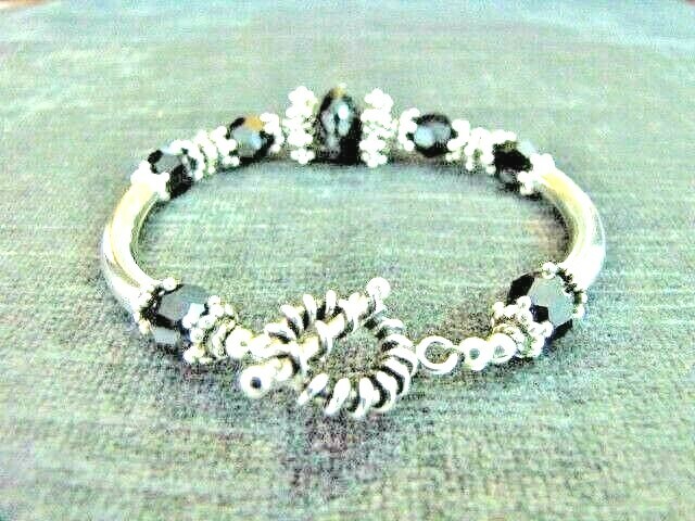 This bracelet comes from my personal collection. Beautiful hand made one of a kind bracelet. The Balinese Beads are sterling, the separator beads and toggle clasp are sterling. Measures 8" long before closing. Bracelet Length 7 1/2" Center Black Glass Bead Measurement 1/2" x 13/16" Accent Black Glass Beads Measurement 13/16" x 13/16" Large Balinese Beads Measurement 1/2" x 3/16" Balinese End Cap Beads Measurement 1/4" x 3/16" Total Weight = 20.4 grams Questions??? Please ask before purchasing to avoid any misunderstandings. The coin not for sale not included for display only Please visit my eBay "store" to view my other items.